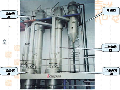 冷凝器的作用:將二次蒸汽冷凝,同時將不凝性氣體分離,以減輕真空系統負荷。