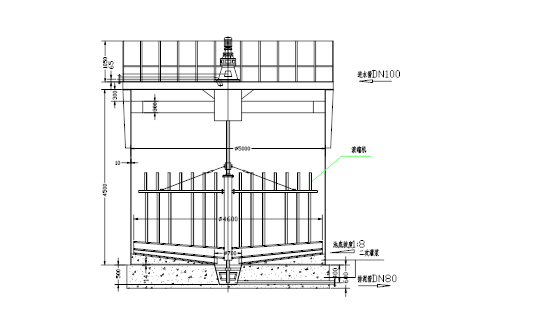 濃縮池沉淀下來的泥,由刮板從四周向中心收集,然后進入集泥斗。由排泥管排出濃縮池。刮臂上安裝的刮板與刮臂成45度角,兩片重合15度角左右,這樣的結(jié)構(gòu)利用集泥。