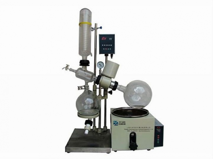 旋轉(zhuǎn)蒸發(fā)器進行提純蒸餾試驗的設備(shèbèi),通過(tōng guò)恒溫加熱,在負壓條件下旋轉(zhuǎn)形成薄膜(薄而軟的透明薄片),高效(指效能高的)蒸發(fā),然后再冷凝回收溶媒,達到提純分離的效果。